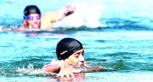 Nadadores tienen puertas abiertas en el espejo de agua