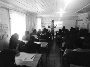 Ángel Castro dicta clase a escolares de Santa Juana