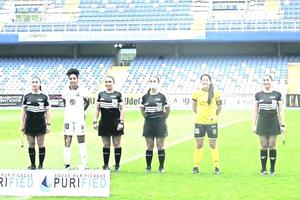 Las capitanas y árbitros en la tradicional foto oficial