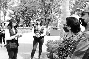 Jóvenes explican a la gente cómo cuidarse del covid-19
