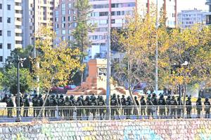 Evitan ingreso de manifestantes a plaza Baquedano, ya sin estatua