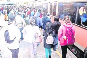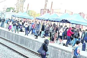 Llegada del tren provoca aglomeraciones por entrar a coches