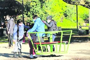 Los niños disfrutan de los juegos del Parque Ecuador